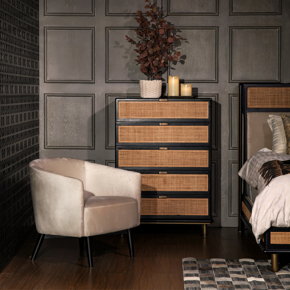 The Amar armchair is a classic choice for a living room. It features an elegant and luxurious design with the finest quality. Made from sturdy wood, with velvet upholstery, Amar surely gives class to your house.