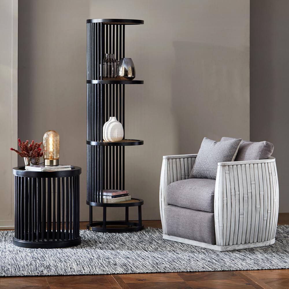 This elegant, curved hardwood frame is sure to be a conversation piece. Curved and polished, the rattan poles add character to the design, making this piece unique and edgy.