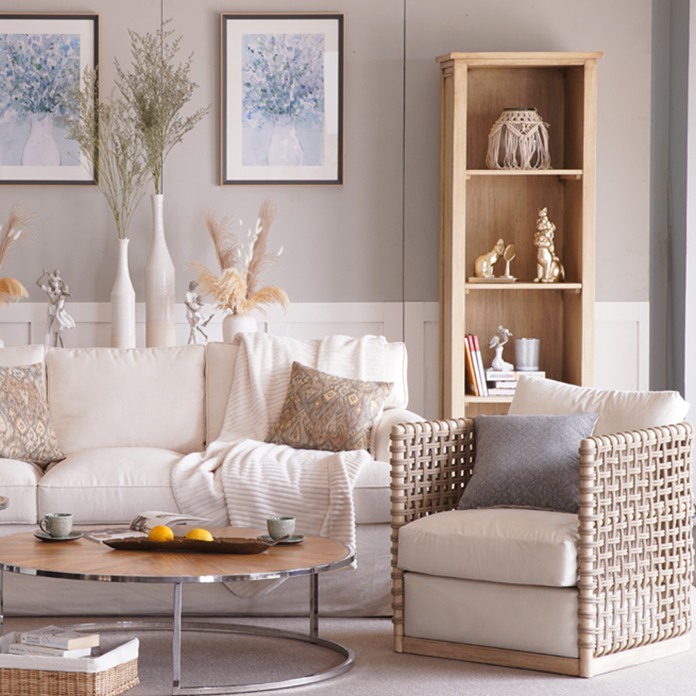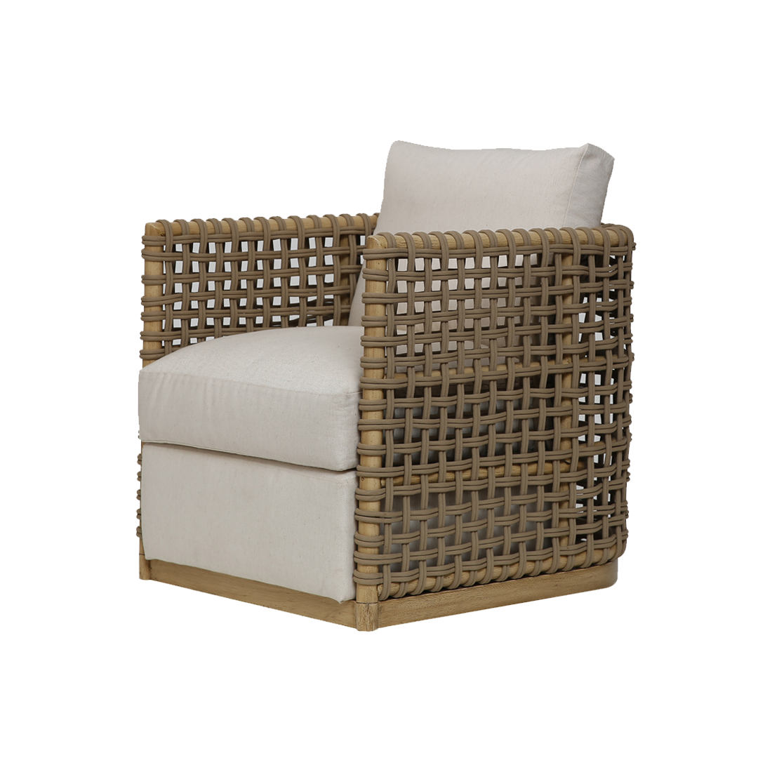 The Adana collection is a blend of wood and rattan, carefully detailed with rope webbing that adds texture to this classic frame. The result: a sophisticated, yet casual look.