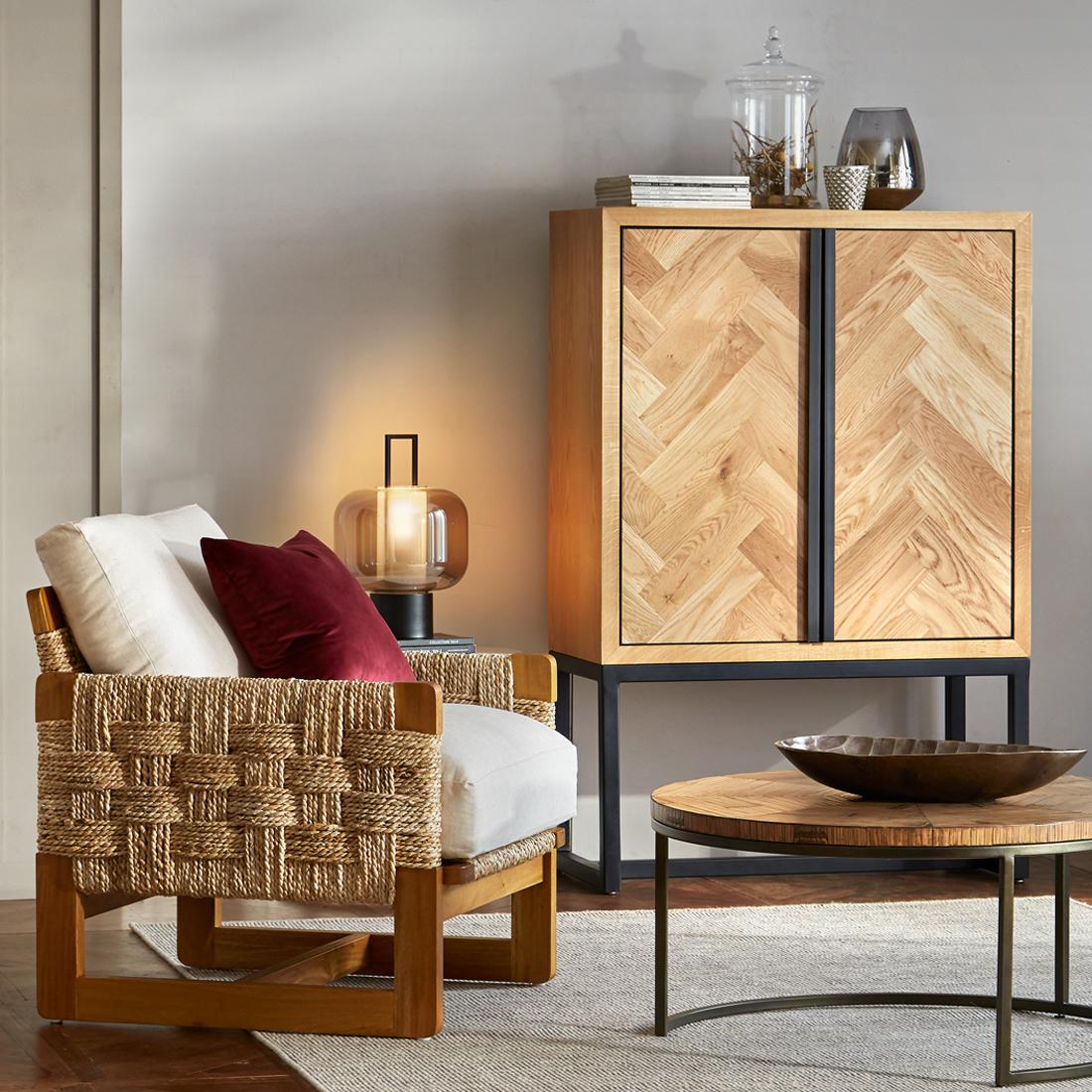 The Alameda armchair is a bold classic design that comes together to create a sophisticated look. Our Alameda Collections are built from solid hardwood with an abaca webbing accent, complemented by a soft, comfy cushion to create an elegant feel.