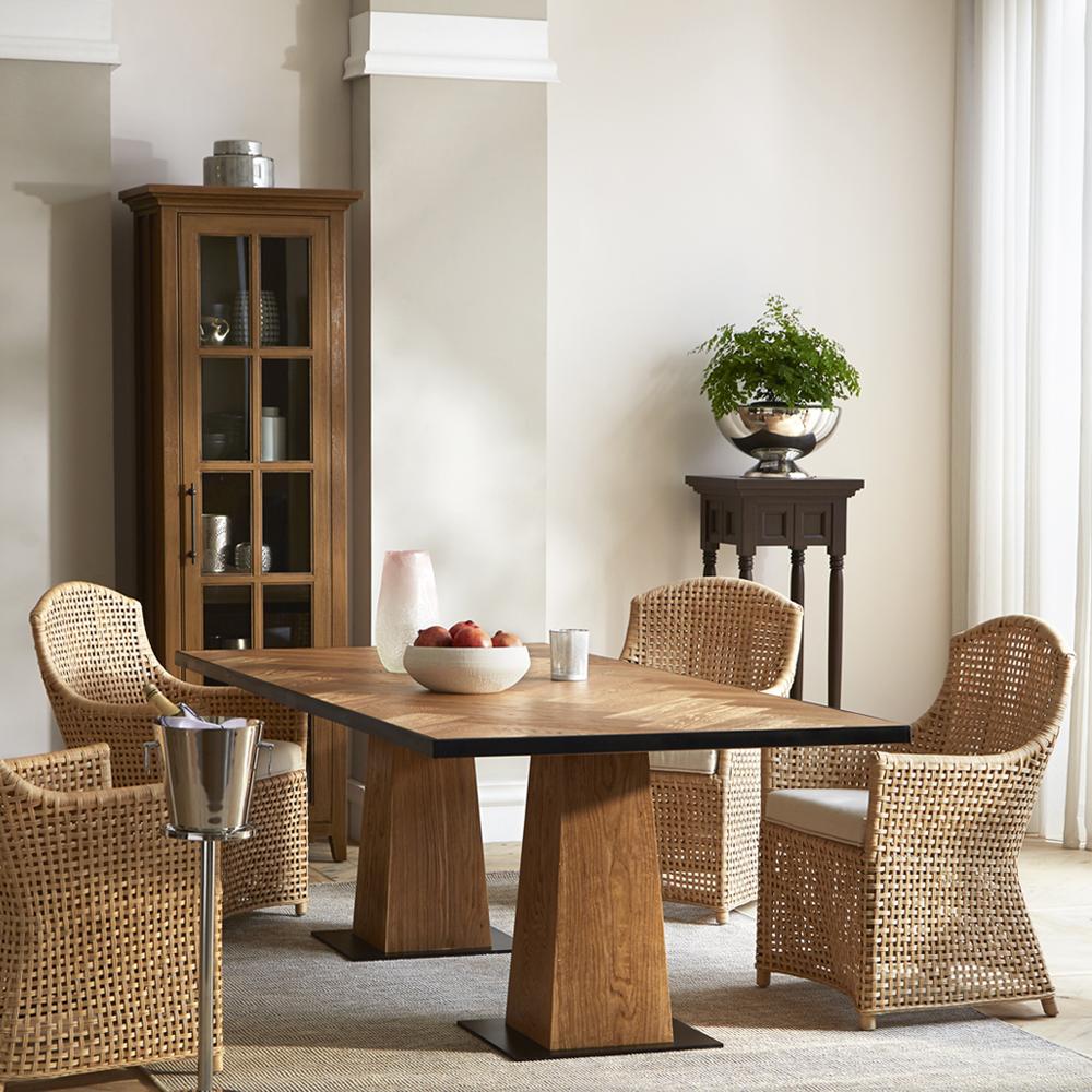 A contemporary approach to a rattan chair. Built from a strong manau wicker frame and intricately woven with rattan core; this piece sends out the modern and classy vibe to your dining room arrangement.