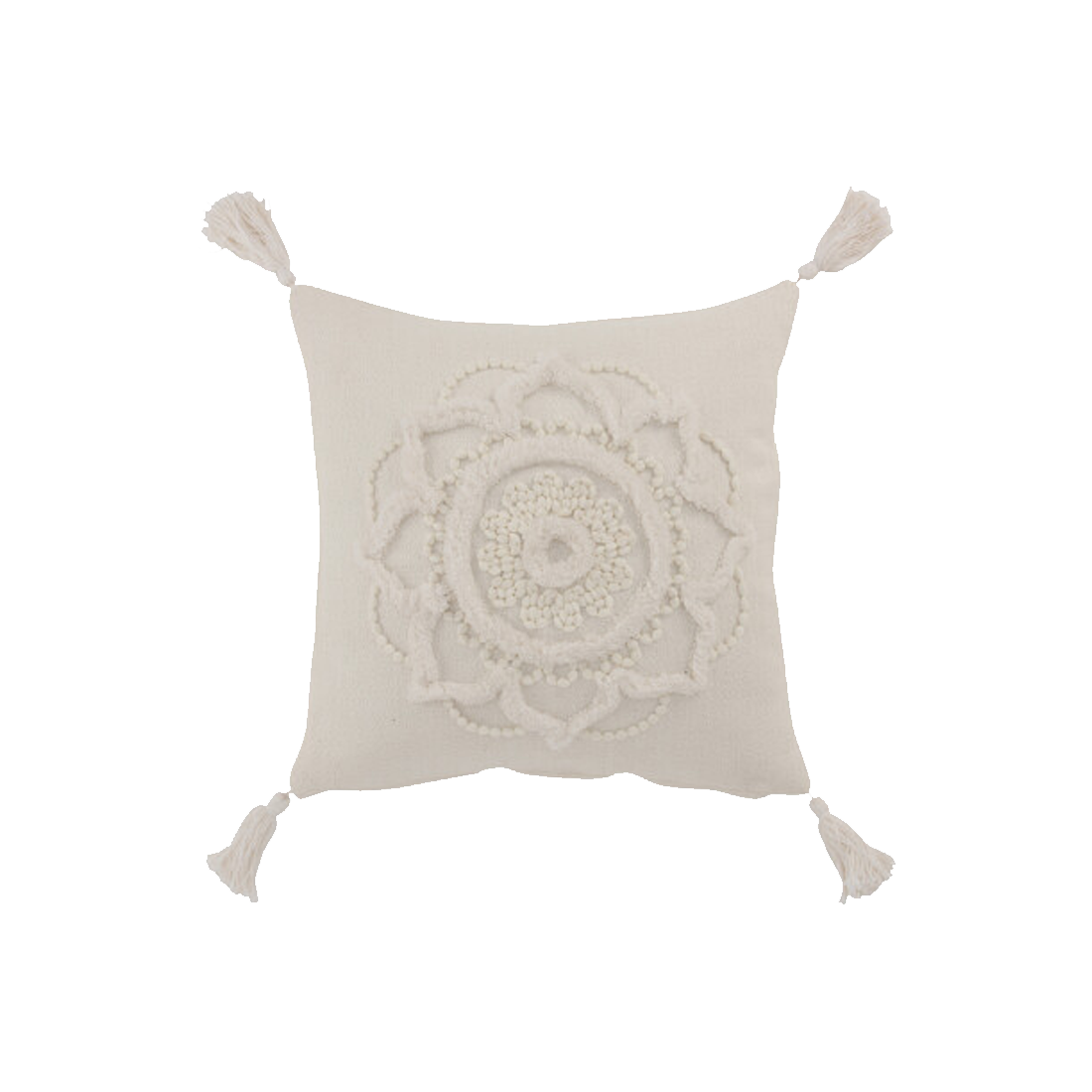 Throw pillow with tassle accent, made of super comfortable cotton linen to complete your living room set-up.