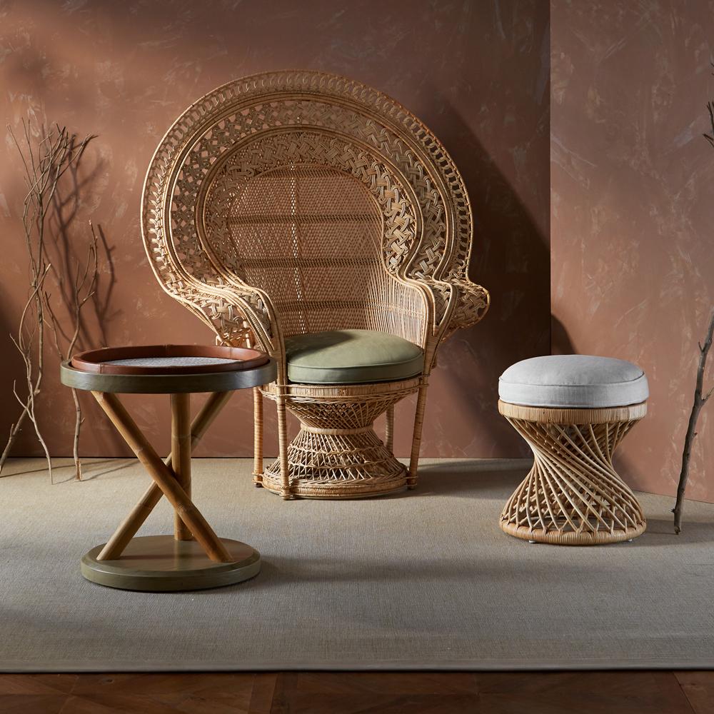 A rustic side table made of eco-friendly manau rattan cane equipped with tray. The unique design is a perfect addition to any living room.